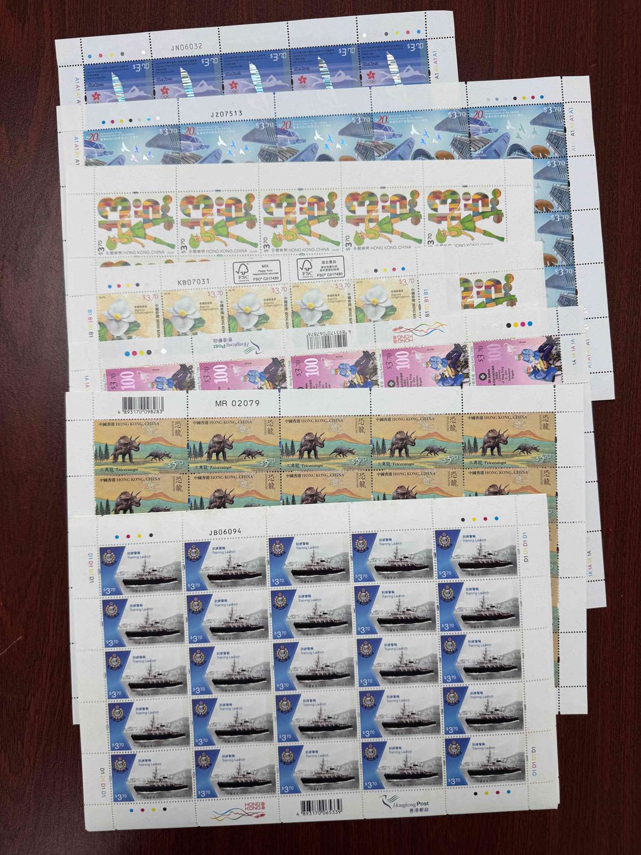 一批香港寄信版票,單枚面值3.7元,25枚一版,共35版,總面值約$3,237.50。