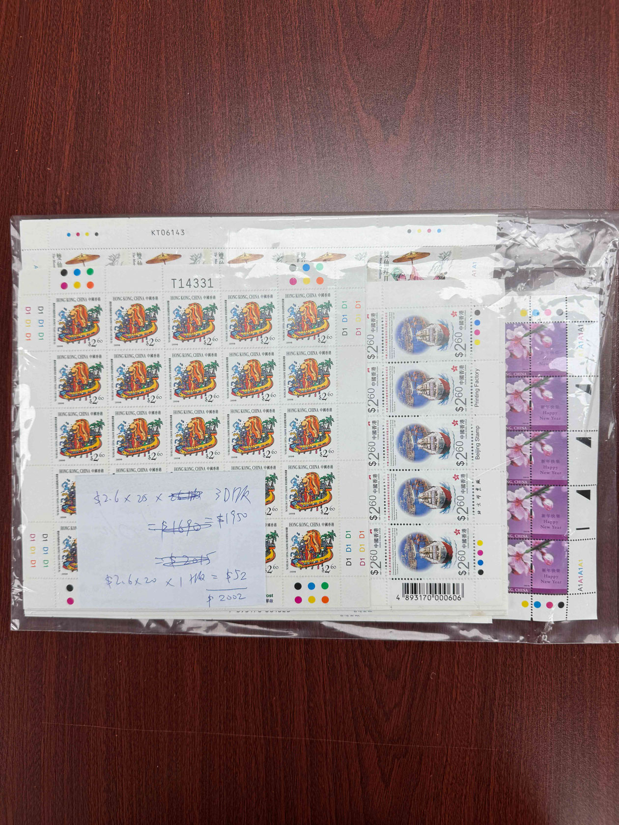 一批香港寄信票2.6元面值,總面值約$2,002。