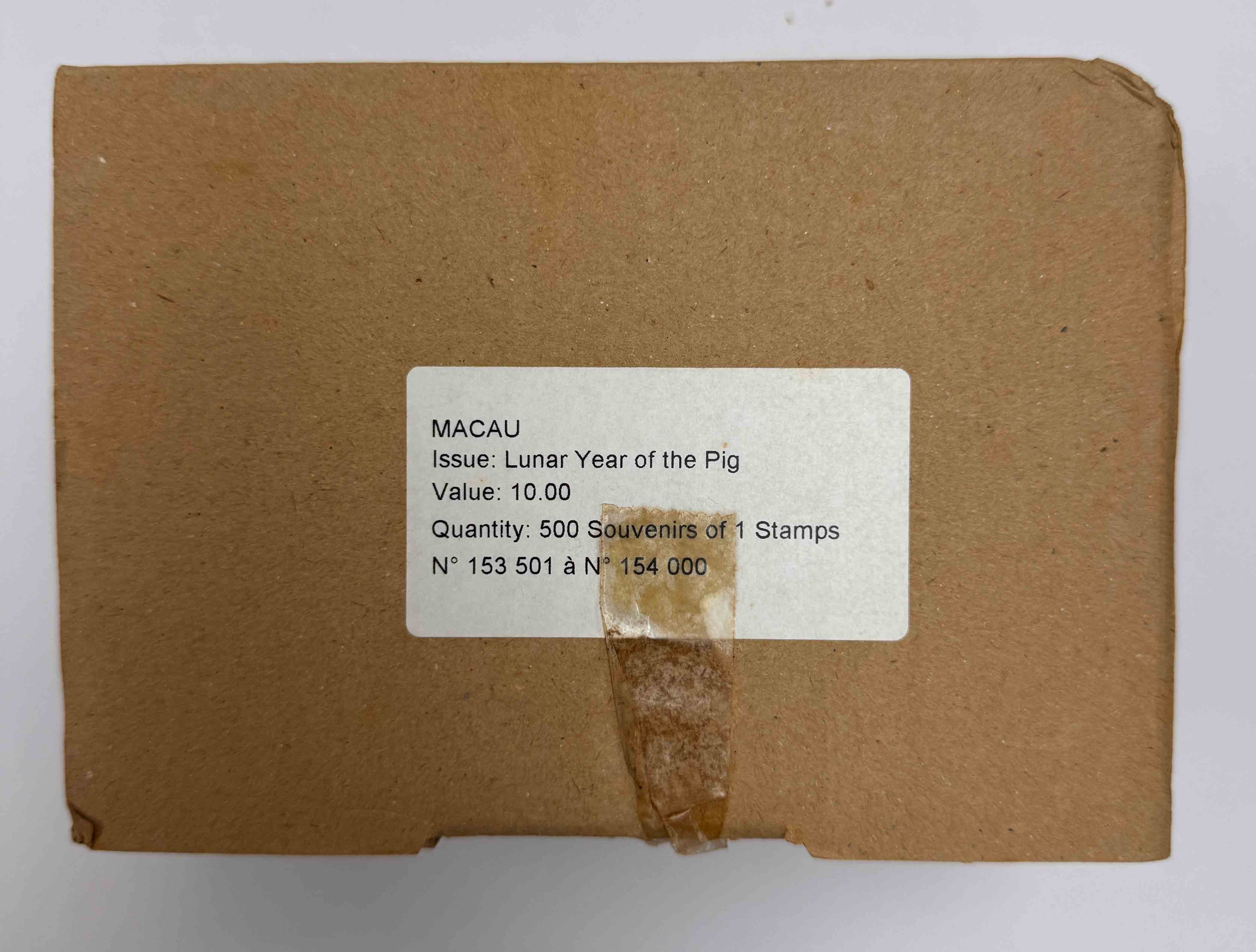 澳門豬年10元面值小型張原封500枚,總面值約$5,000。