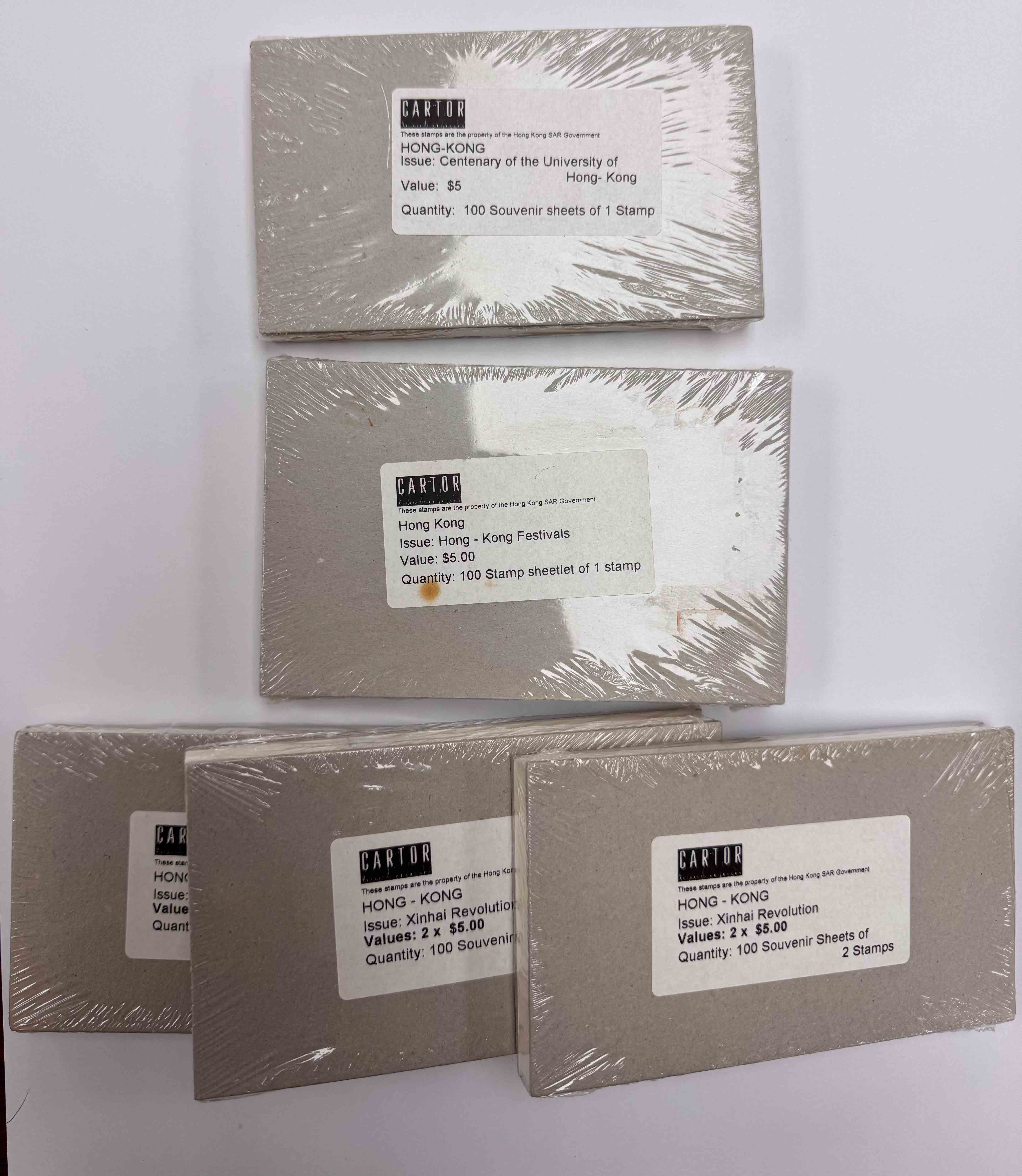 香港中文大學百年紀念型張100枚、香港節日型張100枚及辛亥革命型張300枚,總面值約$4,000。