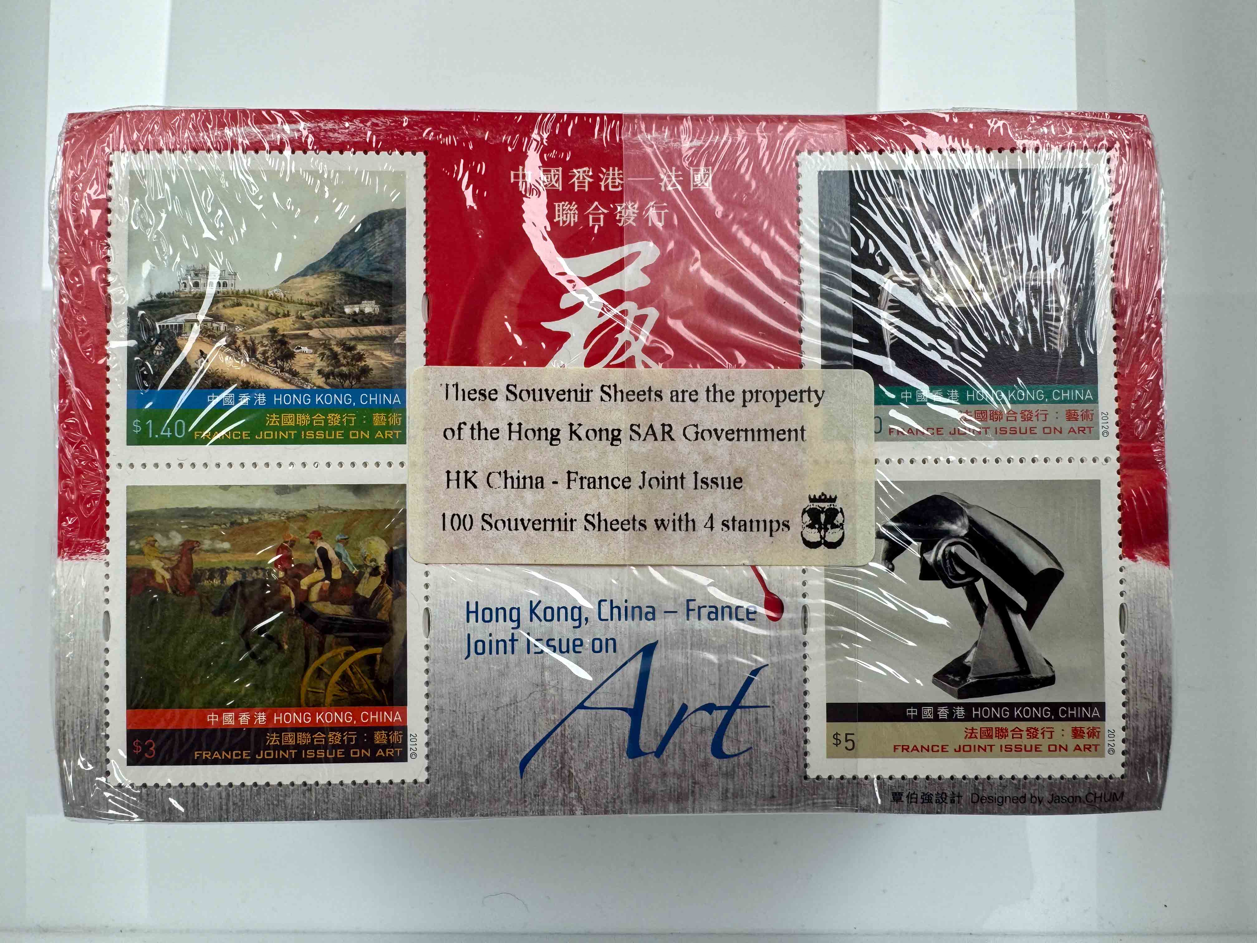 香港法國聯合發行藝術小型張原封500枚,總面值約$5,900。