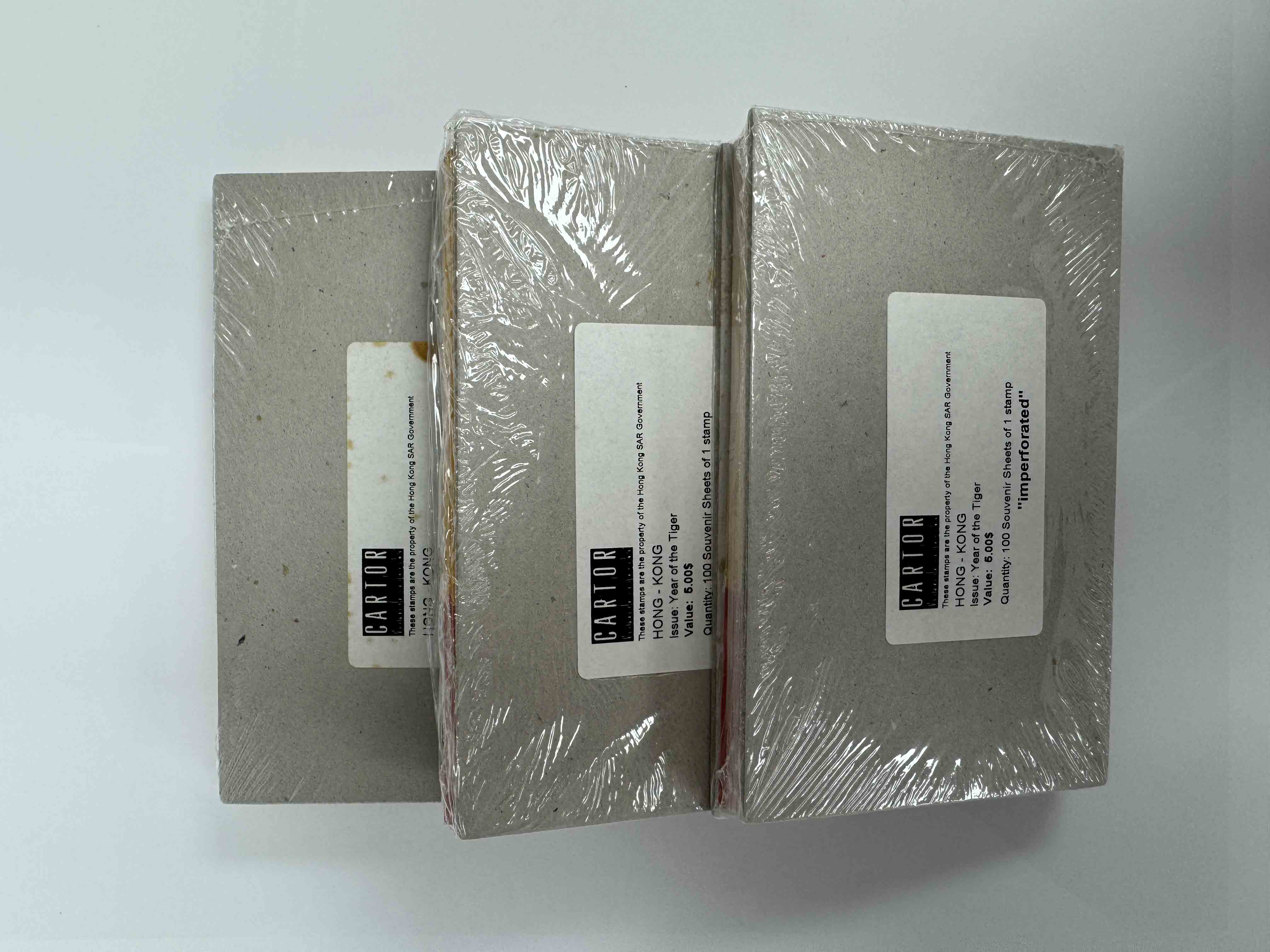 香港虎年無齒小型張300枚,總面值約$1,500。