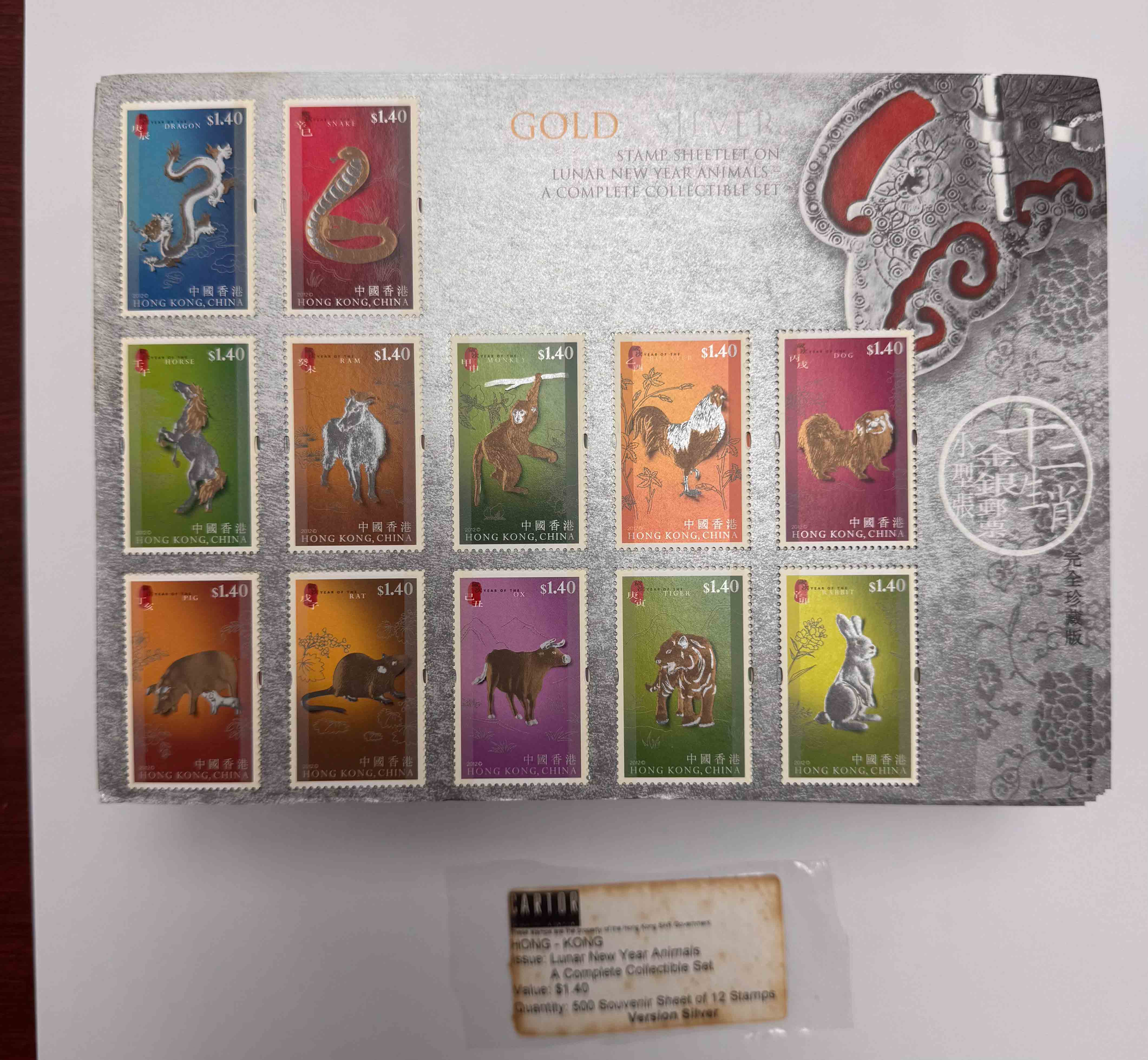 香港12生肖銀組合小全張500枚,總面值約$8,400。