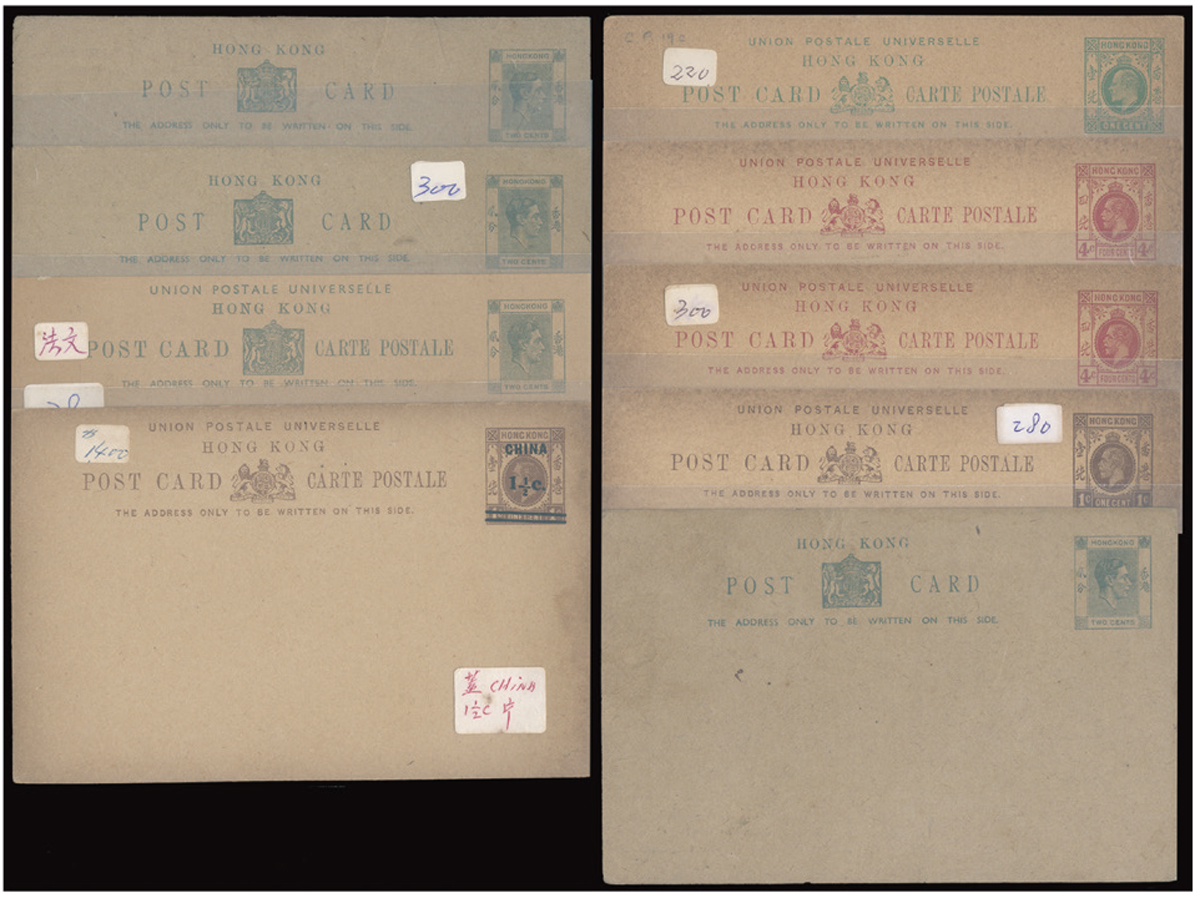including 8 QV issues postal cards, QV 4c postal cover and KGV size H 10c registered cover. All unused. VF-F.