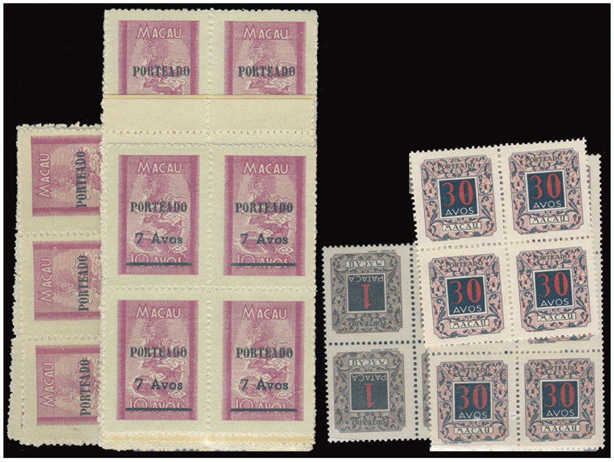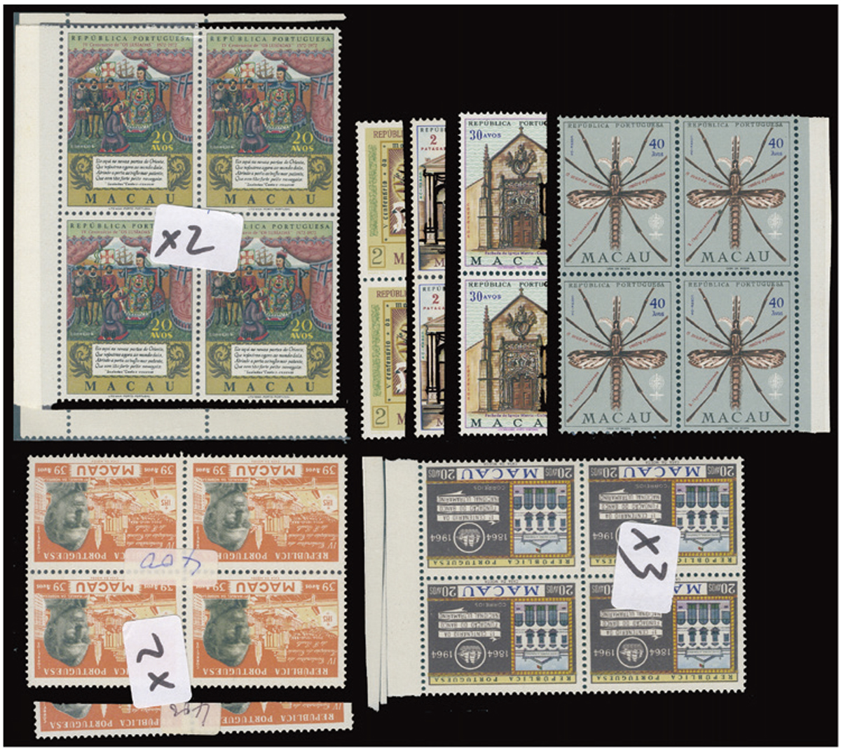 including 2nd series 2 Avos, ovpt. "Republica" 1/2 Avos & 2 Avos. All hinged on the top few stamps, not affecting the other stamps. Please view.