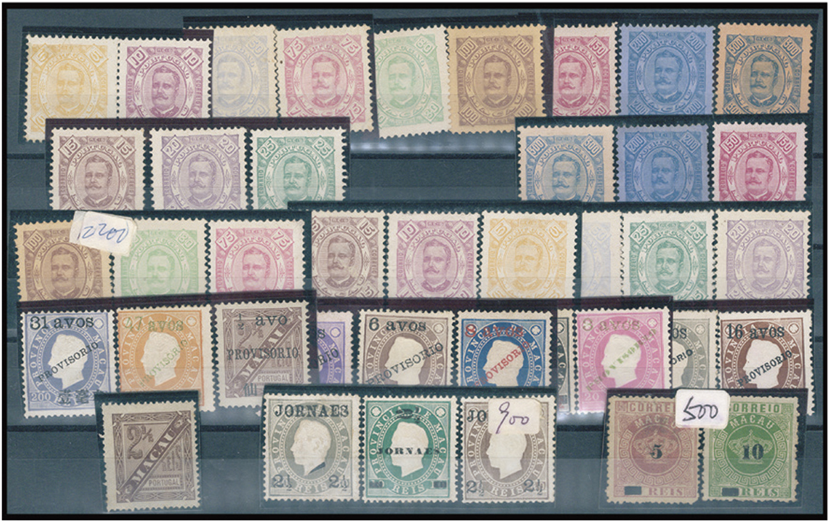 including 1885 Crown surch. set, 1893 Newspaper stamp, 1894 Carlos I x 2 sets of 12, Luis surch. set of 10 and 3 Journal stamps. All mint. VF-F.