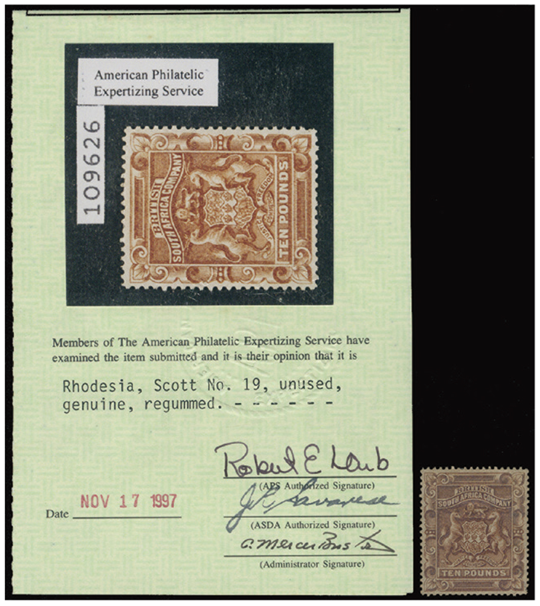 fresh MNH with pristine original gum, slightly toned. Tiny specialist pencil signature at corner of reverse. Still Very Fine. A rare item. 1997 certificate attached.