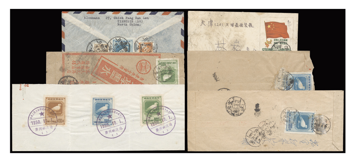 mixed franking on both sides C1, C2, C3 & East China Area issues x 28 (a few faulty on reverse), tied by Shanghai cds. Bearing China and USA PASSED by Customs cachet, USA transit and arrival cds. Rare colourful franking. VF-F.