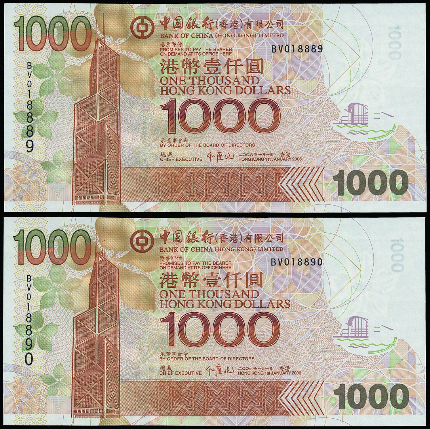 2006 $1000 x 2 (KNB11f), consecutive serial nos.: BV018889-018890. Both UNC.