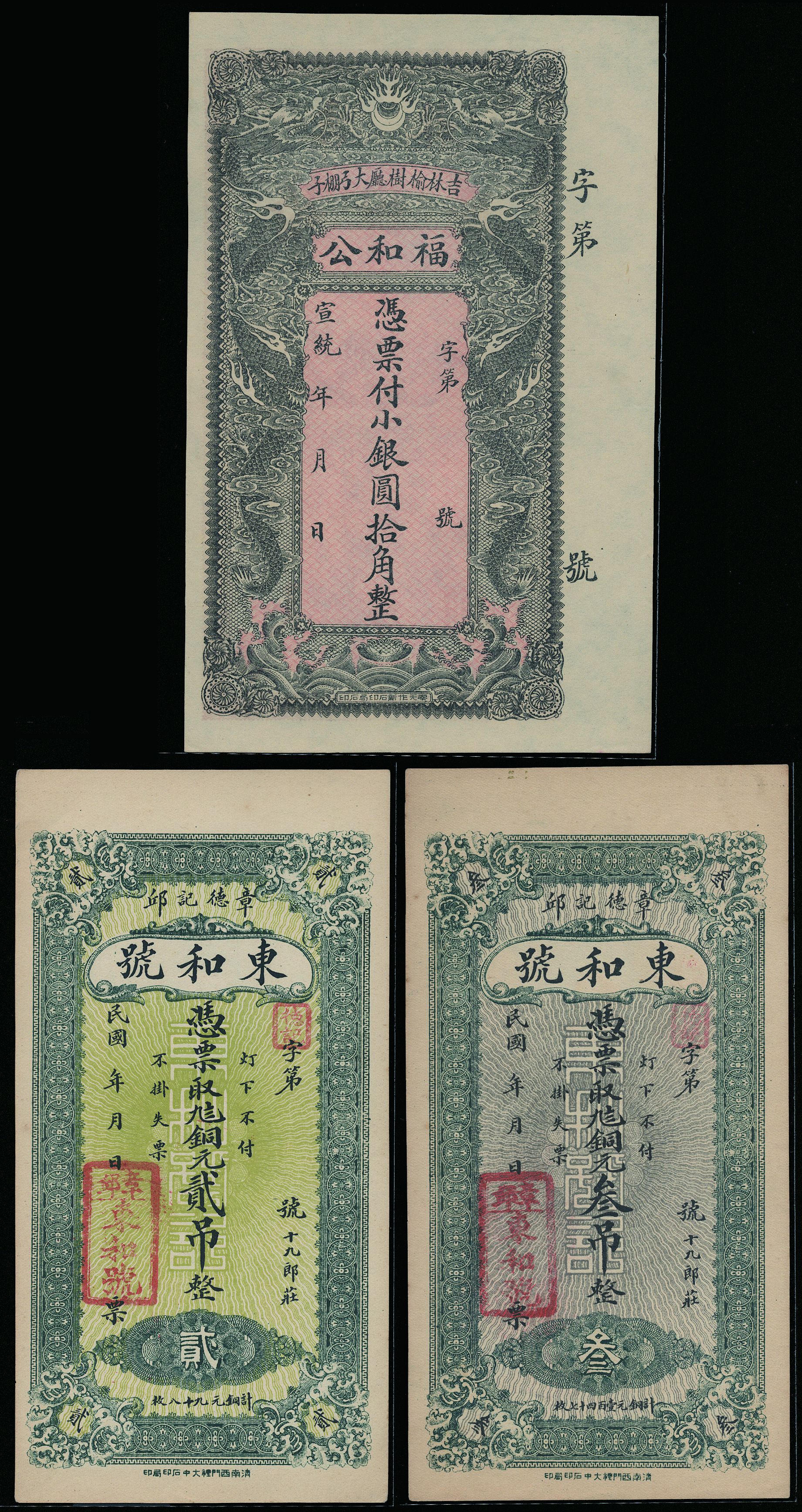 A group of 3 Shantung and Kirin private bank notes,