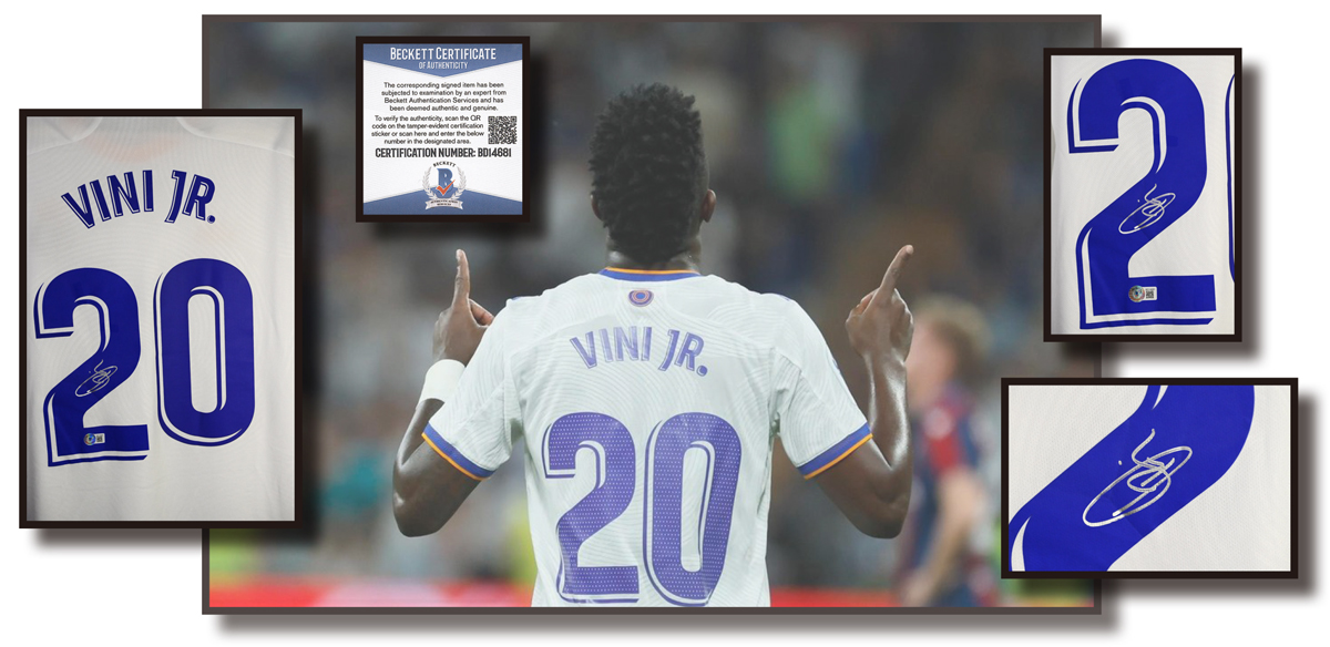 Vinicius Junior signed Real Madrid FC Home Jersey 2021-22 Season, Beckett COA, L size, new without tags.