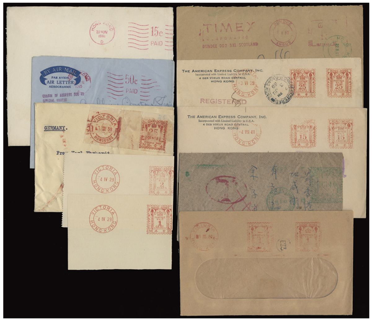 including 5c Postal Fiscal cover, KGVI $10 used on cover, 2nd Asian airmail 25c rate cover and KEVII cover fronts. VF-F.