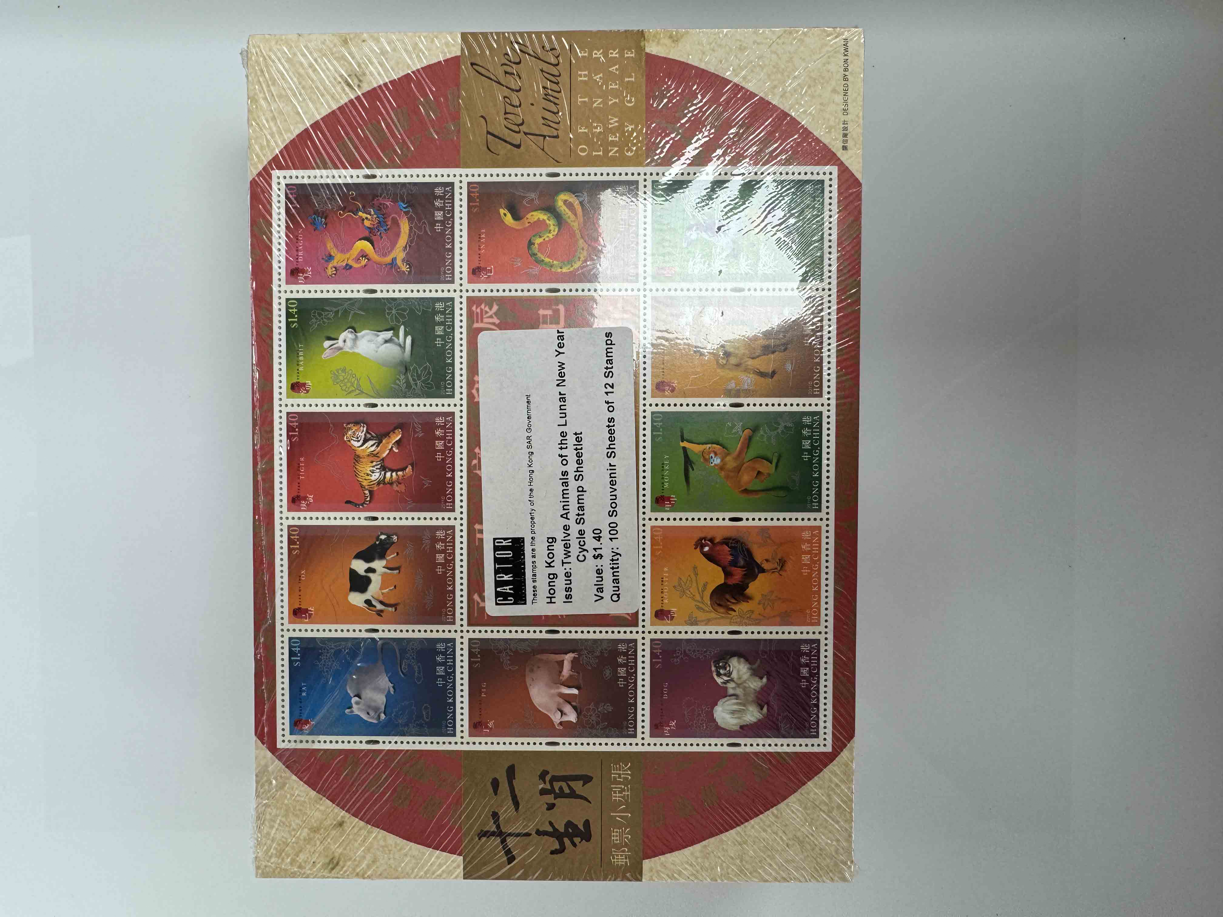 香港12生肖組合小全張500枚,總面值約$8,400。