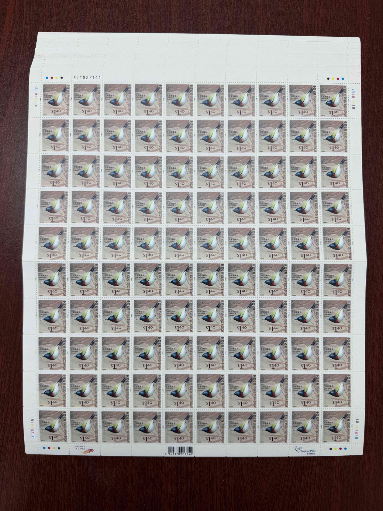一批香港叉尾太陽鳥版票,單枚票1.4元面值,總面值約$5,880。