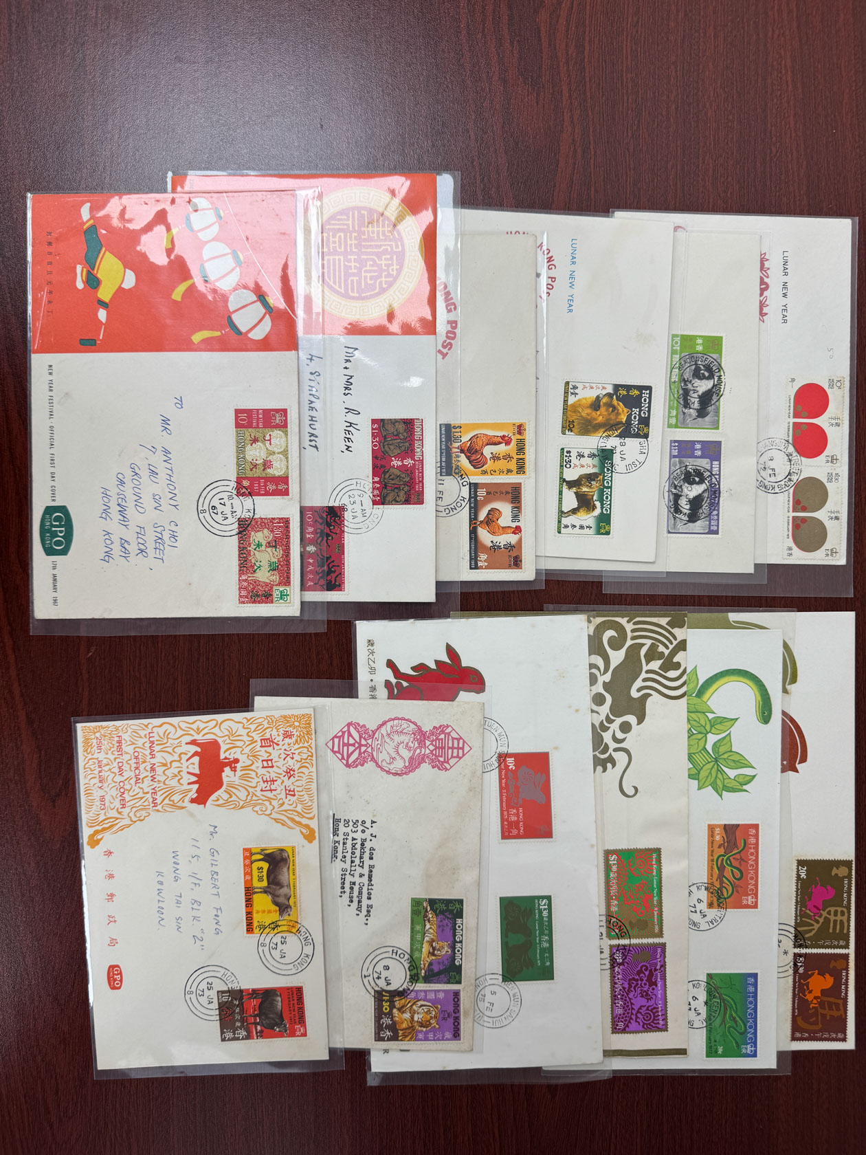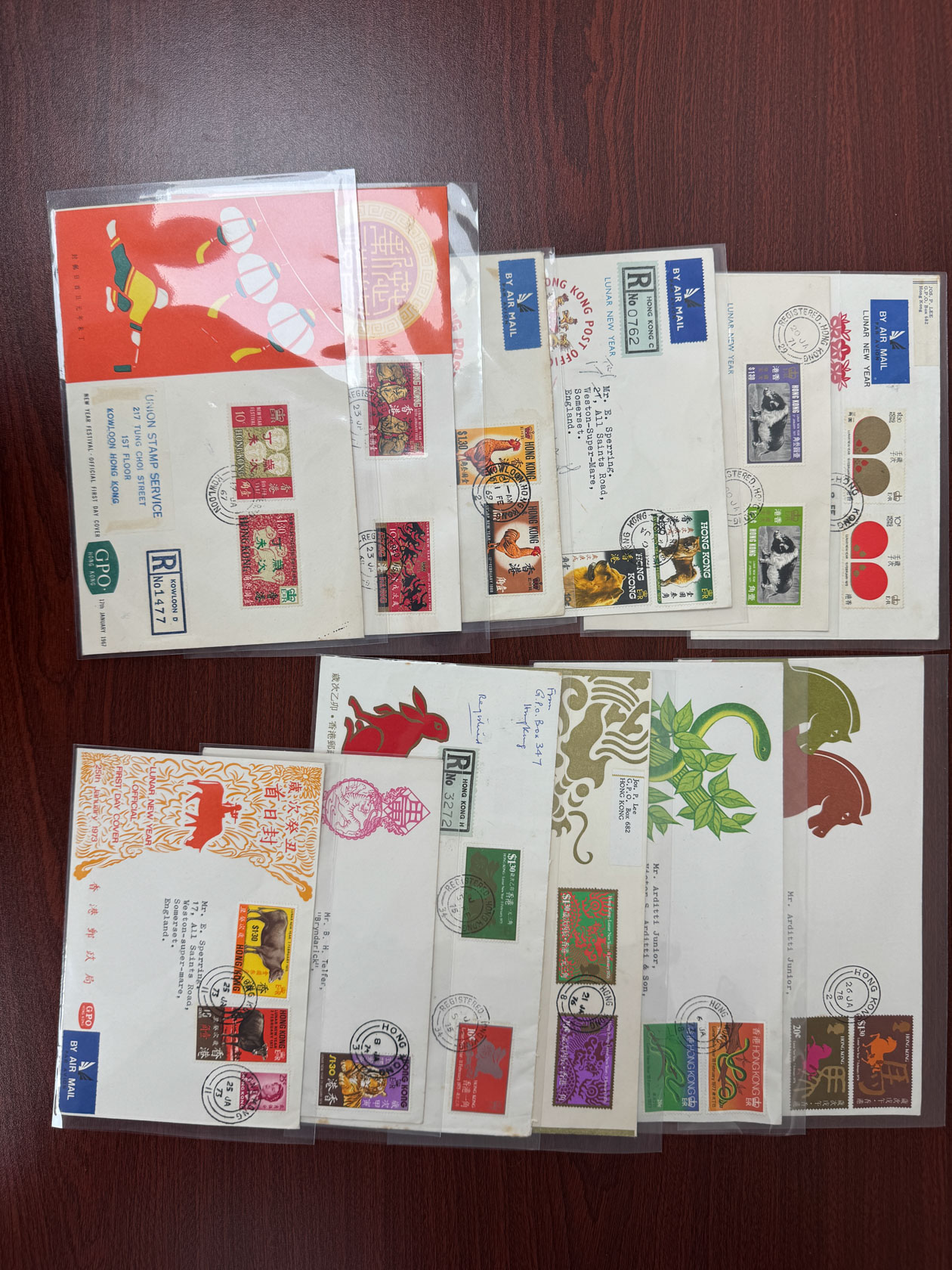 from Year of Ram to Year of Horse. Registered or airmail with addresses. Slightly toned. VF-F.