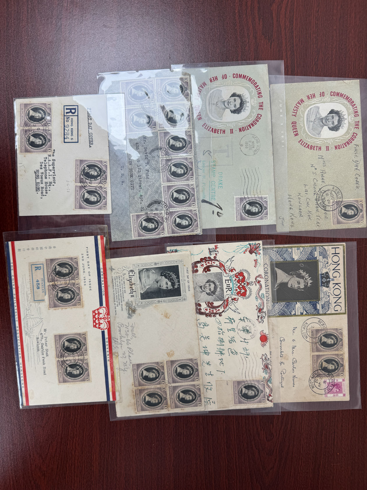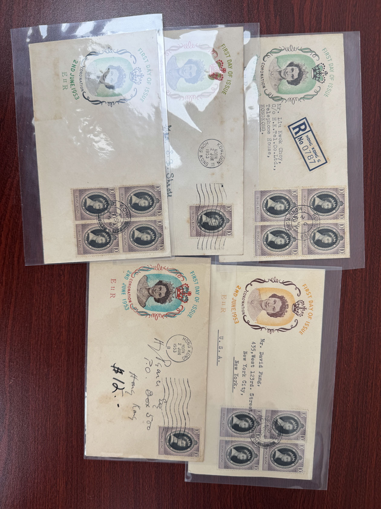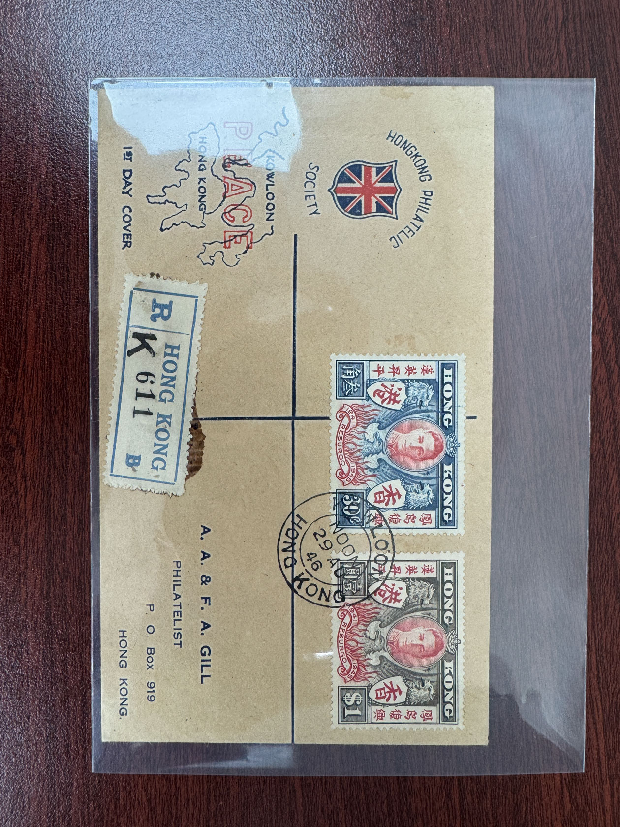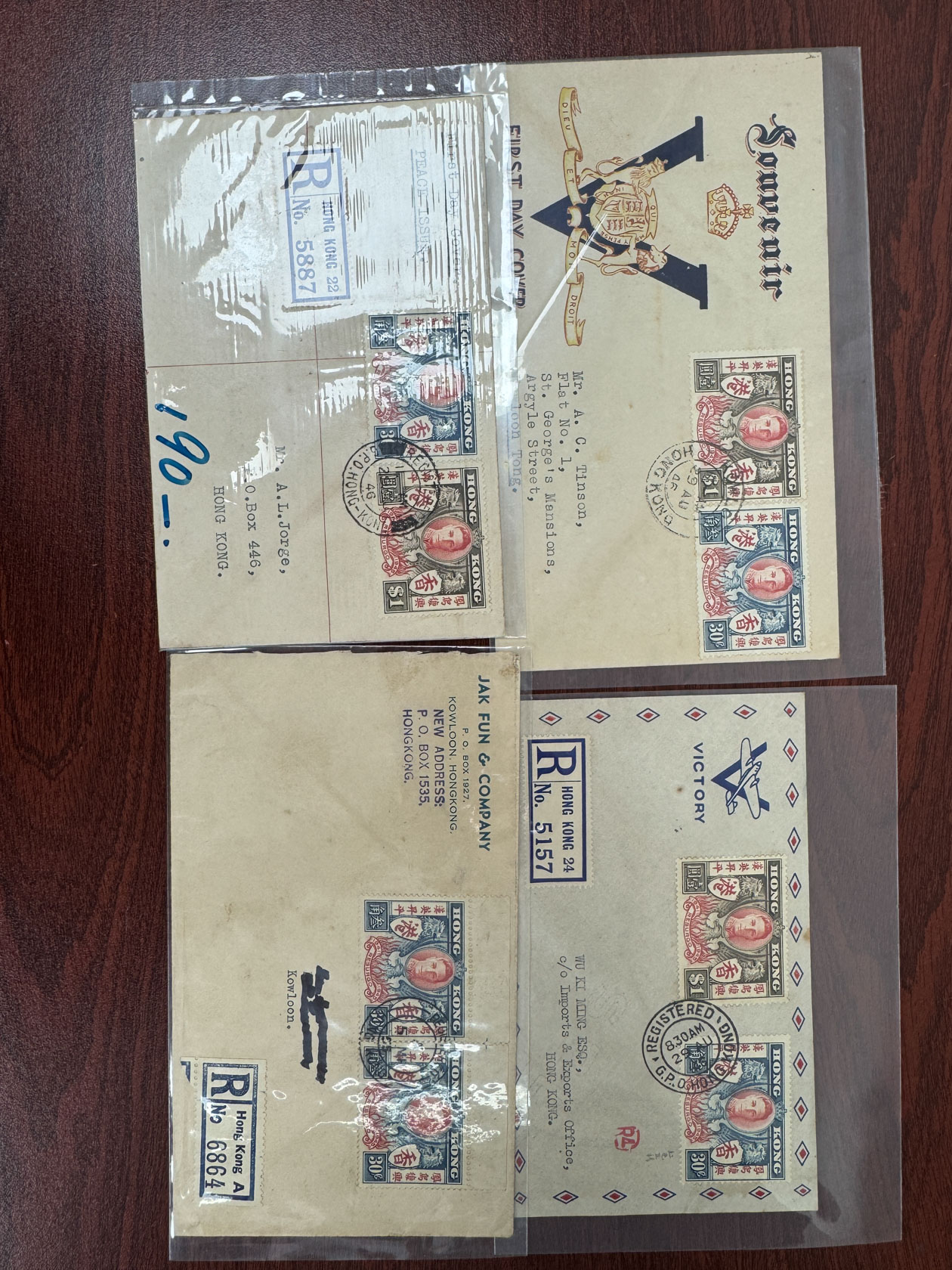 f.w. Hong Kong Victory coomplete set of 2, tied by Hong Kong Kowloon cds. Toned.